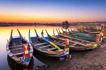 Mandalay was the last capital of the Konbaung Dynasty of Imperial Myanmar before the country was annexed by the British in 1886 A.D and exiled King Thibaw to Ratanagiri in India. It is also regarded as the cultural centre of the capital. Many artists and artisans make Mandalay their home town. The Mandalay Palace, built by King Mindon in 1859 A.D is one of the main attractions. Although most of the original buildings were destroyed during the 2nd World War many are now re-built. Other sites to see are the pagoda studded Mandalay Hill, the Maha Muni Buddha Image totally encrusted with gold and precious gemstones and the various workshops making such exquisite items as 100-looms silk textiles, the shwe chi hto or sequined curtains and cloths and tissue thin gold-leaves. Tanpawady is the place where tourist can still see the stone and wood sculptors at work. Here also brass items are cast using the ancient lost wax method. Across the Ayeyarwady river and about 45 minutes by boat is the world’s biggest hanging bell at Mingun, the Mingun Bell and also the huge unfinished Mingun Pagoda.