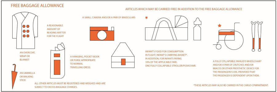 FOR PASSENGER’S CONVENIENCE AND SAFETY/SECURITY REASONS, IT IS ALLOWED TO CARRY ON BOARD ONLY ONE CABIN BAGGAGE WITHIN REASONABLE SIZE AND SHAPE IN THE CABIN TO FIT UNDER PASSENGER’S SEAT. PLEASE DO NOT ASK OUR PERSONNEL TO EXCUSE THESE ARTICELS IN ANY WAY AS THEY ARE NOT AUTHORIZED TO COMPLY WITH SUCH A REQUEST.